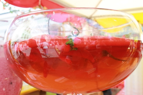 foto realizzata a Dresda ad una festa popolare in piazza.Banchetti con grandi bicchieri che vendevano aperitivi.