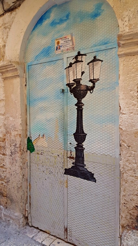 Particolare ed originale il soggetto, peccato sia stato tagliato il portone. |
