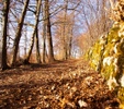 Tag: foglie, autunno, giallo, alberi, tronchi, viale, prospettiva, muschio.