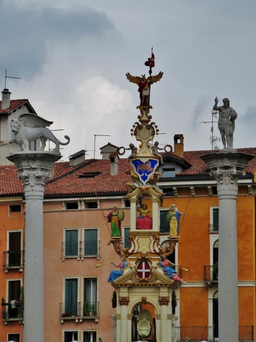 La "Festa dei oto". L'otto settembre è la festa della Madonna di Monte Berico. Questa macchina è "La Rua" (La Ruota) misto sacro e profano (notare quella specie di conchiglia in basso nella foto, dove si sedevano i bambini - ce n'erano quattro-portando il tutto in processione per la città. Questa è una ricostruzione che, da qualche anno, viene esposta in piazza nei giorni precedenti e successivi la festa.