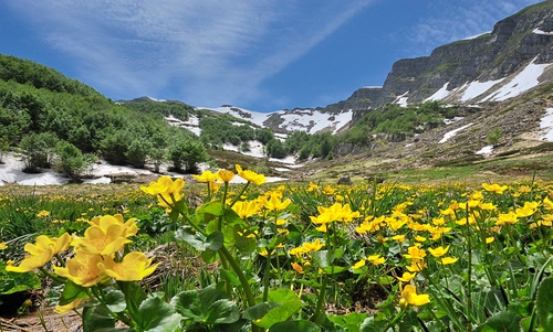 Da proprio sensazione di primavera... questi fiorellini, la neve semisciolta, il verde... Mi piace tantissimo. |
