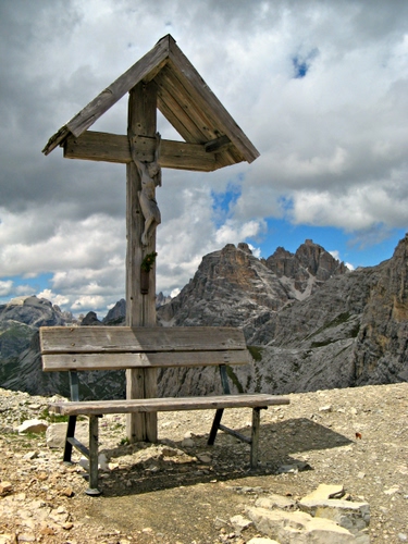 Altri tag (senza riscontro): azzurro, roccia, pietre, statua, tettoia, cristo, grigio, votiva, vette, ombre, edicola.