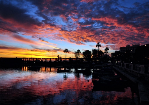 Tag: nuvole, tramonto, cielo, acqua, rosso, palme, giallo, mare, riflesso, silhouette, controluce, riflessi, alberi, ponte, sole, pontile, case.