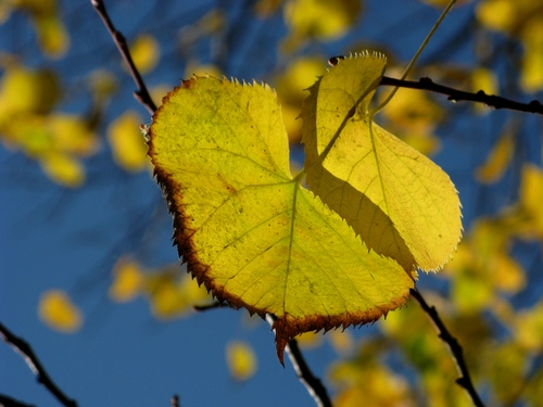 Autunno: foglie gialle stanno per cadere.