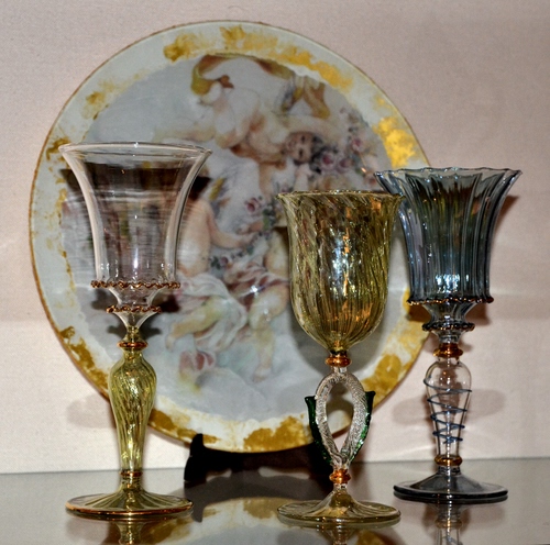 Altri tag (senza riscontro): disegno, murano, calice, giallo, bicchiere, blu, trasparenti, dipinto, antichità, decori, riflesso.