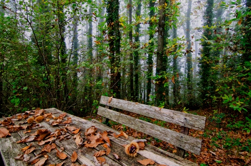 Tag: foglie, panchina, alberi, autunno, tavolo, verde, legno, riccio.
