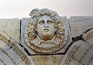 Avambracci femminili con mani congiunte, provviste all'interno di una cerniera che ne consente la reale funzione, al di sotto dei polsi, bracciali in lamina aurea a spirale con terminali a testa di serpente