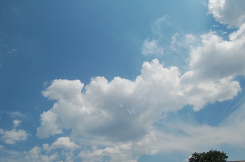 395° Fuochi d'artificio tra nuvole e cielo azzurro