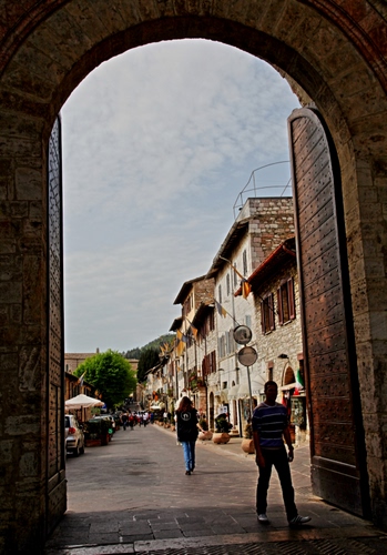 Assisi - Porta Nuova - sovrastante vi è la benedizione profetica di San Francesco.