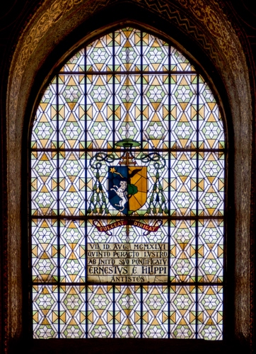 Altri tag (senza riscontro): neogotico, geometria, verde, numeri, scudetto, finestrone, bianco, chiesa, vetrate, colori, cattedrale, gotico, simbolo, grata, insegna, decorazione, rombo, geometrico, cardinale, iscrizione, scritte, lavorazione, leone, vescovile, ocra, scudo, frasi, geometrie, bilancia.