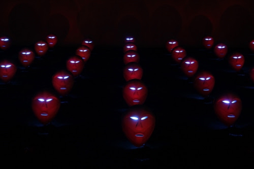 Alcuni anni fa, vennero esposte queste maschere, di derivazione tribale, che i illuminavano di color diversi