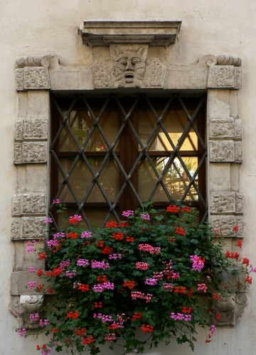 Mascherone su finestra di un palazzo ad Arco (TN)