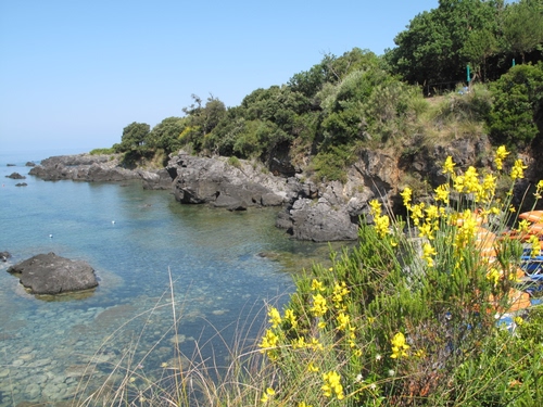 Il limpido mare di una baia rocciosa del litorale marateota, in una mattinata di fine primavera.