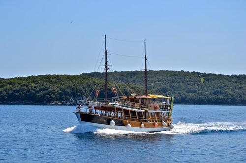 È un battello turistico incontrato lungo la costa della Croazia, fra Parenzo e Rovigno