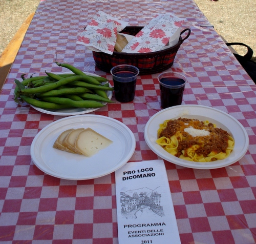 Baccelli e pecorino, chianti e pappardelle sulla lepre.