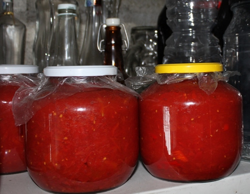 Barattoloni di salsa di pomodoro fatta in casa.