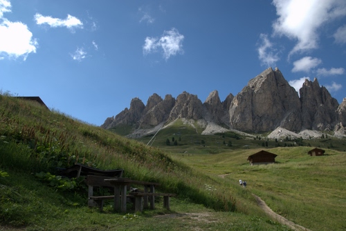 Tag: nuvole, cielo, montagna, verde, montagne, prati, panchine, azzurro, prato, baita, tavolo, baite, erba, malghe, bianco, rocce, case, legno, panorama, dolomiti.