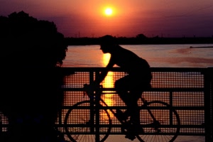 in bici al tramonto