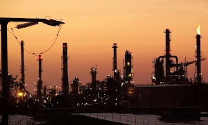 ciminiere della raffineria di notte