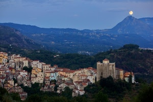 La luna piena sorge dal Monte Sirino.