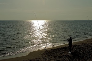 mi piace in complesso l'immagine e trovo bello il controluce della canna da pesca in corrispondenza del riflesso sul mare
