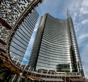 Insolita vista del grattacielo Unicredit a Milanodi