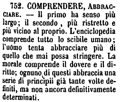 | Usando "abbracciare" (*) si possono ottenere i seguenti risultati: * areno = abbraccino; * remi = abbracciami; * remo = abbracciamo; * areata = abbracciata; * areate = abbracciate; * areati = abbracciati; * areato = abbracciato; * rendo = abbracciando; * evi = abbracciarvi; * resse = abbracciasse; * ressi = abbracciassi; * reste = abbracciaste; * resti = abbracciasti; * ressero = abbracciassero. |