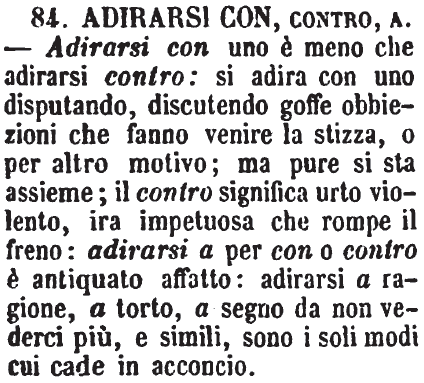 | Usando "adirarsi" (*) si possono ottenere i seguenti risultati: * tersi = adirate; * tirsi = adirati; * torsi = adirato. |