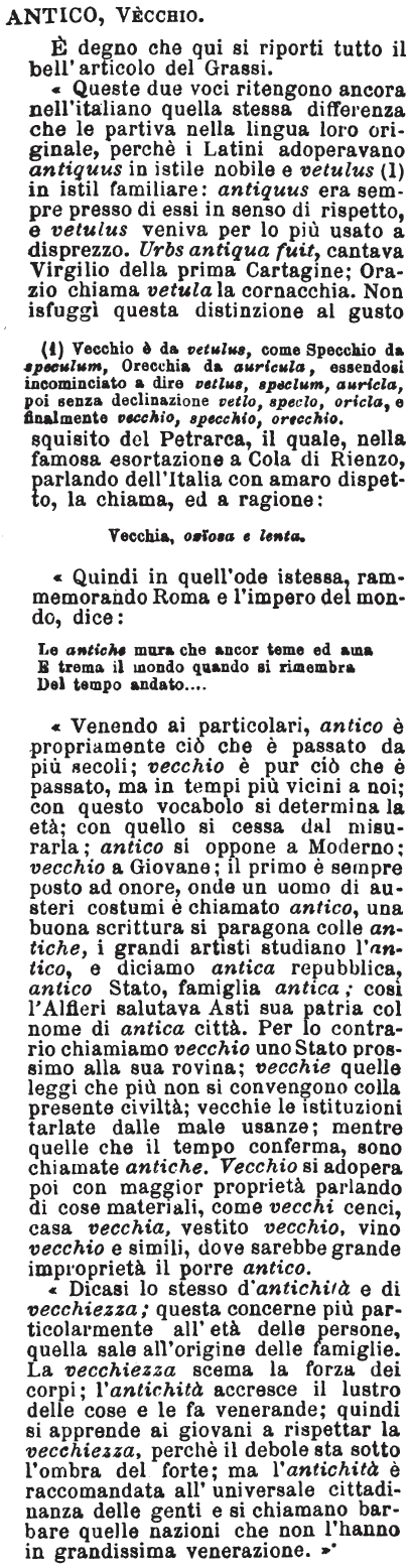 | Antico, Vecchio - E' degno che qui si riporti tutto il bell'articolo del Grassi.