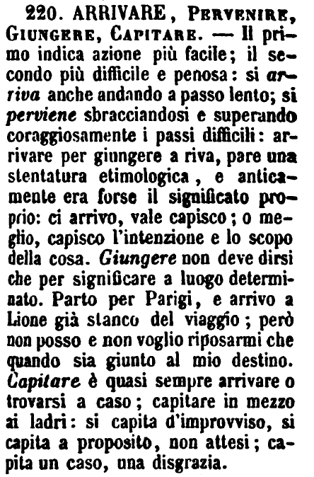 | Usando "arrivare" (*) si possono ottenere i seguenti risultati: * erta = arrivata; * erte = arrivate; * erti = arrivati; * erto = arrivato. |