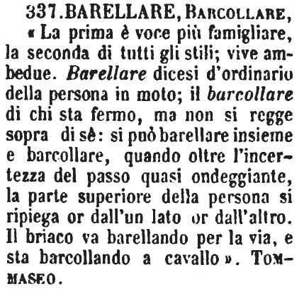 | Usando "barellare" (*) si possono ottenere i seguenti risultati: rubare * = rullare; * areata = barellata. |