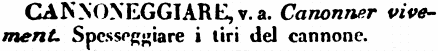 | "cannoneggiare" è formata da: cannoneggi+are. |