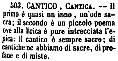 | »» Vedi anche la pagina frasi con cantico per una lista di esempi. |