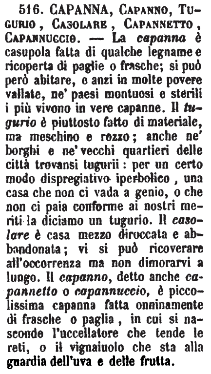 (Tom.) Anco quello dei contadini che stanno a badare all'uva, o altro, è Capanno.