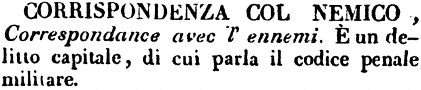| Corrispondenza col nemico - Correspondance avec l'ennemi. È un delitto capitale, di cui parla il codice penale militare. [immagine] |