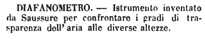 | Diafanometro - Istrumento inventato da Saussure per confrontare i gradi di trasparenza dell'aria alle diverse altezze. [immagine] |