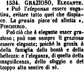 | Grazioso, Elegante - «Può l'eleganza essere negativa, evitare tutto quel che dispiace. La grazia piace ed alletta». Pincherio.