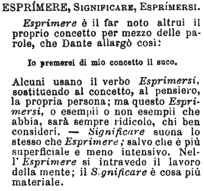 | Usando "esprimersi" (*) si possono ottenere i seguenti risultati: * sili = esprimerli; * silo = esprimerlo; * siti = esprimerti; * siete = esprimerete; * sigli = esprimergli; * sieste = esprimereste. |