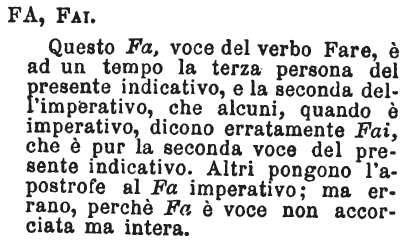 | Usando "fai" (*) si possono ottenere i seguenti risultati: icori * = corifa; ischi * = schifa. |