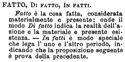 | »» Vedi anche le pagine frasi con fatti e canzoni con fatti per una lista di esempi. |