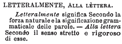 | Letteralmente, Alla lettera - Letteralmente significa Secondo la forza naturale e la significazione grammaticale delle parole. - Alla lettera Secondo il senso stretto e rigoroso di esse. [immagine] |