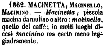 | Scartando le parti in comune (in coda oppure in capo), "macinetta" si può ottenere dalle seguenti coppie: macino/nettano, maciste/nettaste, macisti/nettasti. |