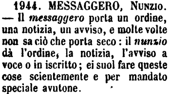 | »» Vedi anche la pagina frasi con messaggero per una lista di esempi. |