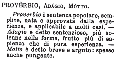 Proverbio, Adagio, Motto - Proverbio è sentenza popolare, semplice, nata e approvata dalla esperienza, e applicabile a molti casi.-