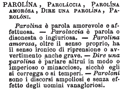 | "paroloni" si può ottenere intrecciando le lettere delle seguenti coppie di parole: pro/aloni. |