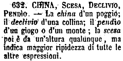 | Cambiando una lettera sola si può ottenere: pendii. |