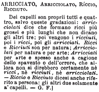| Finiscono con "riccio": arriccio, arricciò, nericcio, capriccio, odoriccio, terriccio, azzurriccio, pagliericcio, raccapriccio, raccapricciò, impiastriccio, impiastricciò, chiacchiericcio. |