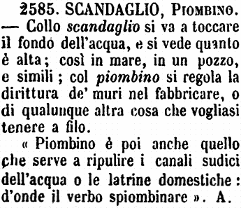 «Piombino è poi anche quello che serve a ripulire i canali sudici dell'acqua o le latrine domestiche: d'onde il verbo spiombinare». A. [immagine] |