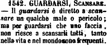 Guardarsi, Scansare - Il guardarsi è diretto a scansare un qualche male o pericolo: ma per guardarsi che uno faccia, non riesce a scansarli tutti, tanto nella vita e nel mondo sono frequenti. [immagine]
