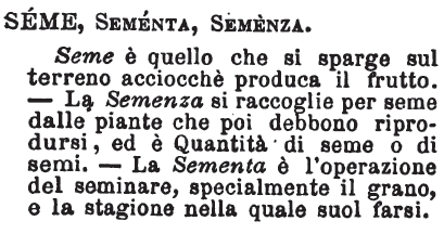 | Parole in ordine alfabetico: sementativi, sementativo, semente, sementi, sementiera, sementiere, sementieri « semenza » semenzai, semenzaio, semenzale, semenzali, semenze, semestrale, semestrali |
